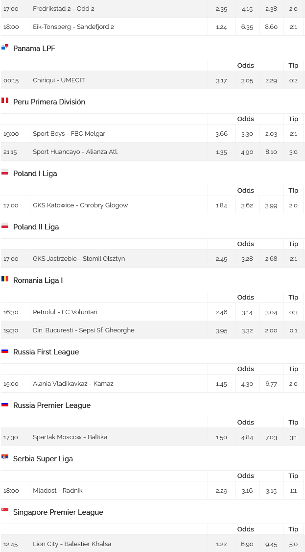 CNCF LC 12:00 티그레스 UANL 산호세 어스퀘이크스 MEX D2 12:05 도라도 데 시날로아 Atletico La Paz WWC 16:00 일본 (W)(N) 스페인 (W) WWC 16:00 코스타리카 (W)(N) 잠비아 (W) INT CF 16:30 UD 알메리아 안테케라 CF MYA D1 18:00 ISPE FC 친랜드 FC MYA D1 18:30 라카인 유나이티드 FC 양곤 유나이티드 FC KOR D2 19:00 서울 이랜드 FC 충남 아산 FC WWC 19:00 캐나다 (W) 호주 (W) WWC 19:00 아일랜드 (W)(N) 나이지리아 (W) KOR D2 19:30 FC 안양 김천 상무 FC SIN D1 20:45 라이언 시티 세일러스 FC 베일스티어 칼사 FC ARCL 22:00 알와흐다(UAE) CR 벨루이즈다드 ARM D1 23:00 알라슈케르트 FC FC 퓨니크 RUS D2 23:00 FC 알라니야 블라디캅카스 FC 카마스 나베레즈니예첼니 2023년08월01일 화요일 ARCL 0:00 알 샤바브 리야드 자말레크 SC LIT D2 0:00 FK 파네베지스 B Vilnius BFA FIN D2 0:30 Kapylan Pallo JJK 이위베스퀼레 FIN D2 0:30 투룬 팔로세우라 SJK Akatemia ROM D1 0:30 FC 페트롤룰 플로이에슈티 FC 볼룬타리 BUL D2 0:30 FC Maritsa Plovdiv Sportist Svoge INT CF 0:30 AS 구비오 1910 US 트리에스티나 EST D2 0:59 FC 플로라 탈린 B Tallinna FC Levadia II POL D2 0:59 GKS 카토비체 Chrobry Glogow NOR D2B 0:59 Alta 스트룀스고세 IF B POL D3 0:59 GKS 야스트솅비에 Stomil Olsztyn NOR D3D 0:59 프레드릭스타드 FK 2 오드 BK B NOR D3E 0:59 나르도 FK 로센보르그 BK B INT CF 0:59 FK 메탈라츠 고르니밀라노바츠 알와흐다 메카 RUS D1 1:30 FC 스파르타크 모스크바 FC 발티카 칼리닌그라드 INT CF 1:30 NK Zagora Unesic(N) HNK 시베니크 EST D1 1:45 FC 쿠레사레 타르투 JK 탐메카 DEN SASL 2:00 오르후스 GF FC 노르셸란 SWE D1 2:00 말뫼 FF IFK 바르나모 SWE D1 2:00 IK 시리우스 AIK 솔나 SWE D2 2:00 외레브로 SK GAIS SWE D2 2:00 Utsiktens BK 헬싱보리 IF SER D1 2:00 FK 믈라도스트 루차니 Radnik Surdulica NOR D2B 2:00 SK 브란 B 레방에르 FK SWE D2N 2:00 Bergnasets AIK Storfors AIK ARCL 2:00 라자 카사블랑카 쿠웨이트 SC FIN WD2 2:00 EBK Espoo Women's KTP 콧카 (W) LIT D2 2:00 FK 리테리아이 B Nevezis NOR D3D 2:00 Eik Tonsberg 사네피오르 포트발 B SWE D1N 2:00 솔렌투나 FK 함마르뷔 TFF SWE D1S 2:00 BK Olympic Malmo 룬드 BK INT CF 2:00 SV Kematen FC 바커 인스브루크 ARG D2 3:00 데펜소레스 데 벨그라노 Flandria PER D1 3:00 스포르트 보이스 FBC 멜가르 HUN D1 3:00 데브레체니 VSC Mezokovesd-Zsory BRA SPY 3:00 산투스 FC (Youth) Desportivo Brasil Youth BUL D1 3:15 PFC 로코모티프 플로브디프 POFC 보테프 브라차 ROM D1 3:30 FC 디나모 부쿠레슈티 ACS 셉시 OSK 스픈투게오르게 ARG D2M1 3:30 Sportivo Dock Sud CA Fenix Pilar ARG D2M2 3:30 Deportivo Espanol Central Cordoba De Rosario ARG D2M2 3:30 Yupanqui Excursionistas BsAs ARG D2M3 3:30 Centro Espanol Mercedes ARG D2M3 3:30 Deportivo Muniz CA 루가노 ARG D2M3 3:30 El Porvenir Central Ballester ARCL 4:00 US 모나스티르 알 나스르(KSA) ICE PR 4:15 케플라비크 IF FH 하프나르피외르뒤르 ICE PR 4:15 KR 레이캬비크 발루르 PER D1 5:15 스포르트 우앙카요 알리안사 아틀레티코 COL D1 6:00 엔비가도 FC 우니온 마그달레나 COL D2 6:00 쿠쿠타 데포르티보 바예두파르 FC NCA D1 6:00 Sport Sebaco Municipal Jalapa ARG D2M1 7:00 Talleres Remdios de Escalada Argentino de Merlo CHI D2 7:00 우니베르시다드 데 콘셉시온 CD 코브렐로아 ARG D2M2 7:00 Ferrocarril Midland General Lamadrid BRA D3 8:00 Aparecidense GO 플로레스타 EC BRA D3 8:00 브루스키 FC 상베르나르두 USA MLSRv 8:00 뉴욕 레드불스 B 올랜도 시티 SC B BRA D4 8:00 아기아 지 마라바 FC Atletico Cearense CE COL D1 8:10 보야카 치코 FC 라 에키다드 BRA D4 8:30 데모그라타 FC 아나폴리스 GO CNCF LC 9:00 클루브 아메리카 콜럼버스 크루 CNCF LC 9:00 푸에블라 FC 시카고 파이어 BRA D4 9:00 Princesa AM Ferroviario CE ARG D2 9:10 올 보이스 Defensores Unidos CHI D2 9:30 데포르테스 라세레나 데포르테스 테무코 MEX D2 10:05 Alebrijes de Oaxaca CD 타파티오 MEX WD1 10:06 클루브 레온 (W) 케레타로 FC (W) COL D1 10:20 아틀레티코 후니오르 아틀레티코 부카라망가 PER D1 10:30 우니베르시타리오 데 데포르테스 Carlos A. Mannucci CNCF LC 10:30 데포르티보 톨루카 콜로라도 라피즈 CNCF LC 11:00 CD 과달라하라 스포팅 캔자스시티 해외축구일정 해외축구경기일정 팀코리아분석 팀코리아픽 팀코리아스포츠분석 승무패 결장정보