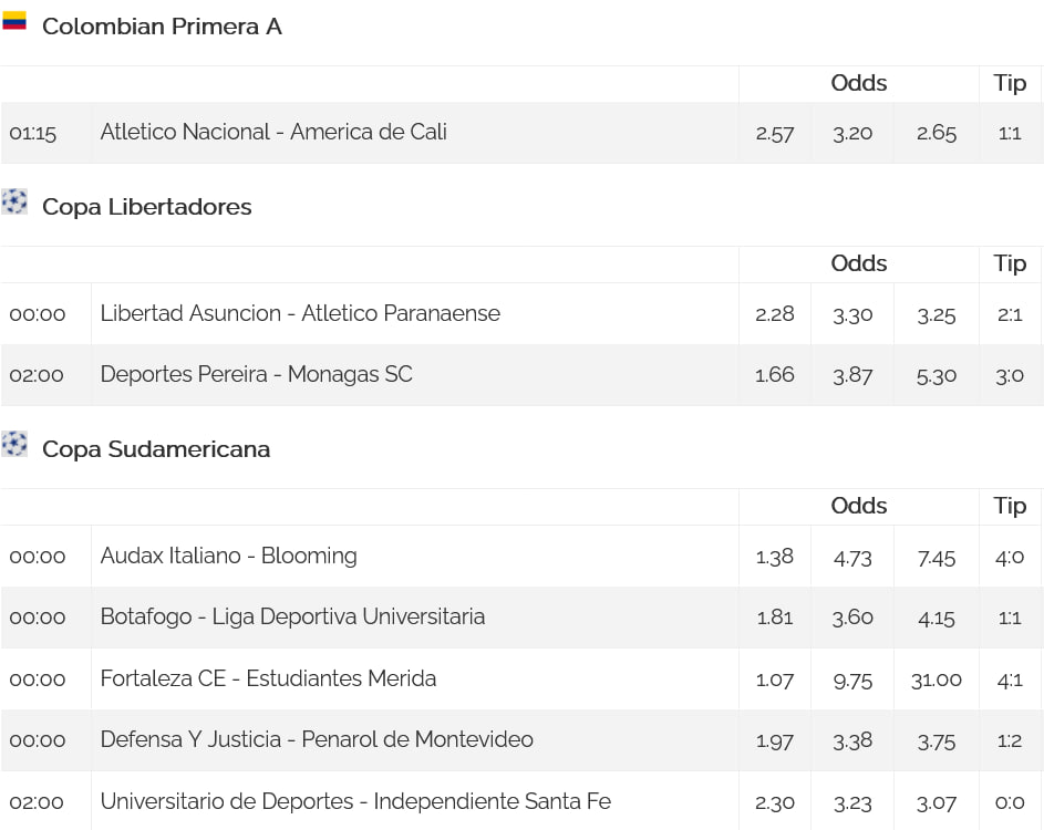 멕시코 리가 데 엑스판시온 MX(QF)12:05 [(a)-8] 틀락스칼라 타파티오 [(a)-2] 일본 J3 리그14:00 [8] 가고시마 Utd 기라반즈 키타큐슈 [19] 14:00 [20] Sagamihara 도야마 [4] 14:00 [6] Vanraure Imabari [10] 몽골 프리미어리그14:00 [1] FC 울란바토르 칸가리드 FC [9] 17:00 [7] 울란바토르 시티 FC 코롬콘 FC [8] 동남아시안게임18:00 Indonesia U22(N) 미얀마 (U22) 국제 친선경기18:00 스페인 U19 모리타니 (U20) Vietnam Championship U1918:00 송람 응에안 FC (U19) FLC 타인호아 FC (U19) Nepal super18:15 Machhindra Sankata FC 우크라이나 프리미어 리그19:00 [10] 이눌레츠 Kryvbas [6] 19:00 [11] 메탈리스트 1925 하르키우 루크 르비브 [14] 카자흐스탄 퍼스트 디비전19:00 [15] Astana B Zhenis [9] 19:00 [13] FO Jas Qyran Khan Tengri FC [5] 19:00 [7] 타라즈 에키바스투즈 [11] 19:00 [2] Turan FK Yelimay Semey [1] 19:00 [12] Yassy FK Aktobe II [10] 19:00 [6] 아크자이크 우랄스크 FK 카이란 [8] 국제 친선경기19:00 Montenegro U18 북마케도니아 (U18) Australia Queensland State Women's Premier League19:15 Gold Coast city (W) 브리즈번 올림픽 유나이티드 (W) 러시아 FNL 2 - 그룹 2PG(C)20:00 [CB-6] Dynamo Vladivostok 랴잔 [CA-6] Uzbekistan Division 1(A)20:00 [A-4] 쇼르탄 구조르 Lok. 타슈켄트 [A-1] 국제 친선경기20:00 그리스 (U16)(N) 웨일스 (U16) 그리스 슈퍼리그 2(N)20:45 [N-5] PAOK Saloniki B 니키 볼로스 [N-4] 20:45 [N-12] 베리아 FC Panathinaikos B [N-8] 20:45 [S-1] 키피시아스 AEK B [S-12] 동남아시안게임21:00 동티모르 (U22)(N) 필리핀 U22 우크라이나 프리미어 리그21:00 [7] 보르스클라 폴타바 디나모 키예프 [4] 그리스 슈퍼리그 2(N)21:00 [N-10] 디아고라스 테스프로토스 [N-14] 라트비아 옵티벳 비르스리가21:00 [2] 리가스 푸트볼라 스콜라 발미에라 [5] 아르메니아 퍼스트리그21:00 [5] 아라라트-아르메니아 2 BKMA 2 [3] 21:00 [4] FC 아라라트 예레반 B 우라르투 2 [7] 21:00 [2] Gandzasar Kapan Syunik [10] 21:00 [12] Lernayin Artsakh B 퓨닉 예레반 2 [6] 21:00 [9] MIKA Ashtarak 알라쉬커트 2 [11] 21:00 [1] FC 웨스트 아르메니아 FC 시라크 B [8] 카자흐스탄 퍼스트 디비전21:00 [4] Kairat Academy Akademiya Ontustik [14] Uzbekistan Division 1(A)21:00 [A-3] 코칸드 1912 Xorazm Urganch [A-9] 21:00 [A-6] Unired Navbahor Namangan B [A-7] 케냐 프리미어 리그21:00 카리오방기 샥스 레인저스 아르헨티나 리저브리그21:00 Ferro Carril Oeste Reserves Estudiantes de Buenos Aires Reserves 21:00 Deportivo Moron Reserve Quilmes Reserves 21:00 Atletico Fenix Reserves 탈레레스 코르도바 2 Azerbaijan Division 221:00 Sabayi II FK Qabala II 타지키스탄 비샤야 리가21:00 [8] 후잔트 CSKA 포미르 두샨베 [9] Azerbaijan Division 221:30 E Nel G Tick MOIK 바쿠 21:30 로크바탄 Araz Nakhchivan 불가리아 파르바 리가21:45 [14] 블라고에브그라드 보테브 플로브디브 [10] 알제리 디비전 122:00 [16] 첼굼 세티프 [3] 시리아 시리아컵22:00 알 이티하드 알레포 Al-Sahel Sport 22:00 알 카라마 Al Tal SC 탄자니아 리기 쿠 바라22:00 [4] Singida United Young Africans [1] 아르헨티나 리저브리그22:00 클루브 알마그로 (R) 차카리타 주니어스 (R) 22:00 Deportivo Camioneros Reserves Defensores de Belgrano Reserves 22:00 CA Colegiales Reserve Club Comunicaciones Reserves 22:00 Villa San Carlos Reserves Canuelas FC Reserves 코소보 슈퍼리그22:00 [2] FC 발카니 프리시티나 [4] 22:00 [7] KF Llapi 드리타 [1] Uganda Division 222:00 Mbarara City Adjumani Town Council FC 22:00 Kataka FC Jinja North FC 22:00 Airtel Kitara FC Soroti FC 22:00 FC Calvary Boma Young FC 22:00 NEC FC Bugolobi Lugazi Municipal FC 투르크메니스탄 요카리 리가22:00 [2] 코펫닥 아시가바트 알틴 아시르 [3] 22:00 [9] 사가담 아할 [6] Brazil Campeonato U20 Women22:00 Fortaleza U20 (W) Botafogo U20 (W) 이란 디비전 122:30 [12] Darya Babol 파르스 자누비 잠 [9] 이집트 디비전 2 - 그룹 A22:30 Tamya Kima Aswan 22:30 Telephonaat Beni Suef El Madina El Monowara 22:30 Shoban Moslemen Qena Dayrout 22:30 Nasr Taadeen 미스르 엘마카사 이란 디비전 122:45 [15] Arman Gohar 사이파 [4] 22:45 [17] Khalij Fars Mahshahr Mes Shahr Babak [8] 라트비아 옵티벳 비르스리가23:00 [6] 젤가바 리가 FC [1] 세르비아 세르비안컵23:00 [SER D1-2] TSC 바츠카 토폴라 노비 파자르 [SER D1-6] 23:00 [SER D1-15] 라드니크 추카리츠키 [SER D1-3] 이란 디비전 123:00 [10] Esteghlal Molasani Astara [13] 23:00 [14] Shahrdari Hamedan 파지르 세파시 [3] 23:00 [16] Chooka Talesh 베데란 테헤란 [1] 23:00 [6] Chadormalou Ardakan 에스테그랄 쿠제스탄 [2] 23:00 [11] Khooshe Talaee 케이바르 코라마바드 [5] 라이베리아 LFA 퍼스트 디비전(A)23:00 [A-6] Al Suqoor 다르네스 [A-5] Sweden Folksam U21 Allsvenskan Norra(E)23:00 [E-2] 외스테르스 IF (U21) 미엘뷔 AIF (U21) [E-3] 우즈베키스탄 슈퍼리그23:00 [13] FK 부하라 Met. 베코보드 [10] Israel Women 1st National(CR)23:00 [2] Hapoel Jerusalem (W) Maccabi Kishronot Hadera Women [3] 아르헨티나 리저브리그23:00 벨레즈 살스필드 2 에스투디안테스 L.P. 2 23:00 사르미엔토 후닌 2 센트랄 코르도바 2 23:00 반필드 2 CA 콜론 (R) 23:00 뉴웰스 올드 보이스 2 티그레 2 23:00 San Telmo Reserve Almirante Brown Reserves 23:00 Sacachispas Reserves CS Dock Sud Reserves 23:00 CA San Miguel Reserves UAI Urquiza Reserves 가나 프리미어리그23:00 [6] 아산테 코토코 Bibiani Gold Stars [7] 국제 친선경기23:30 핀란드 (U16) 헝가리 (U16) Israel State League(USF)23:45 [S-2] 하포엘 크파르 샬렘 H. 헤르츨리야 [S-3] Israel Women 1st National(R)23:45 [7] AS Tel Aviv University Women 하포엘 베르셰바 FC (W) [8] 불가리아 파르바 리가0:00 [